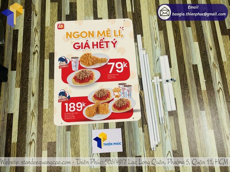 60cm x 120cm: Thường dùng trong các quán café, nhà hàng hoặc cửa hàng tiện lợi để quảng bá món mới, chương trình khuyến mãi.