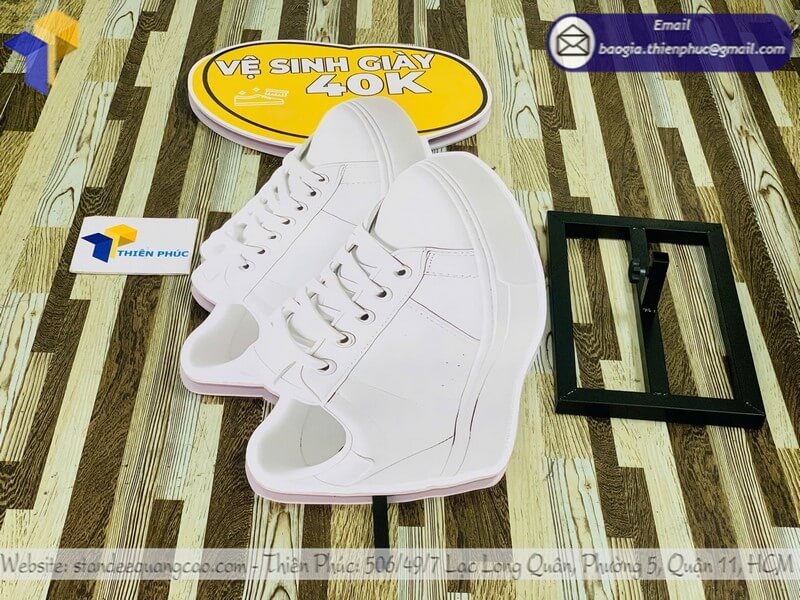 Tên sản phẩm: Xưởng làm mockup sản phẩm quảng cáo in 3D cửa hàng với logo VỆ SINH GIÀY 40K