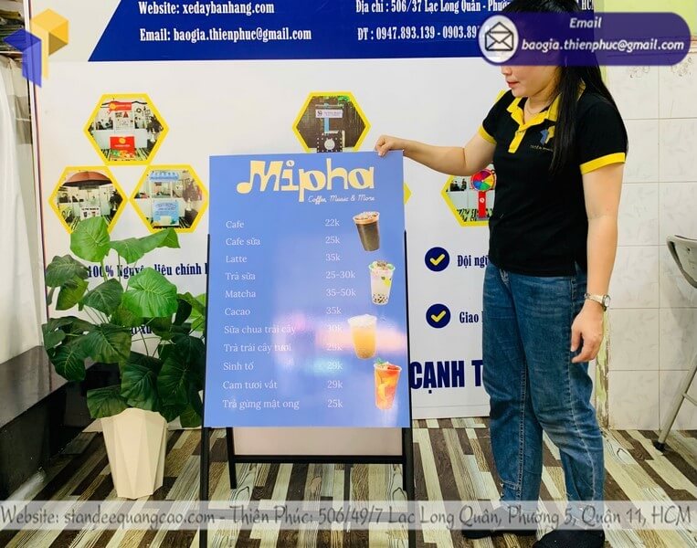 “Bảng chữ A có tay xách bên Thiên Phúc giúp quán tôi nổi bật hơn hẳn. Di chuyển nhẹ nhàng, gấp gọn tiện lợi, lại còn in đẹp!”