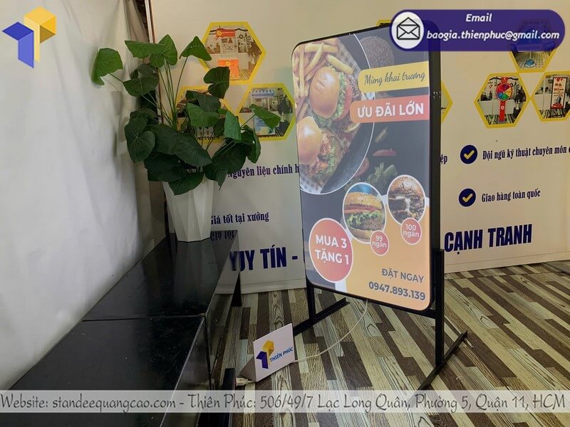 - Dễ dàng thay đổi nội dung: Một số mẫu bảng hộp đèn có thể tháo lắp dễ dàng, thuận tiện cho việc cập nhật thông tin khuyến mãi hoặc thay đổi logo.