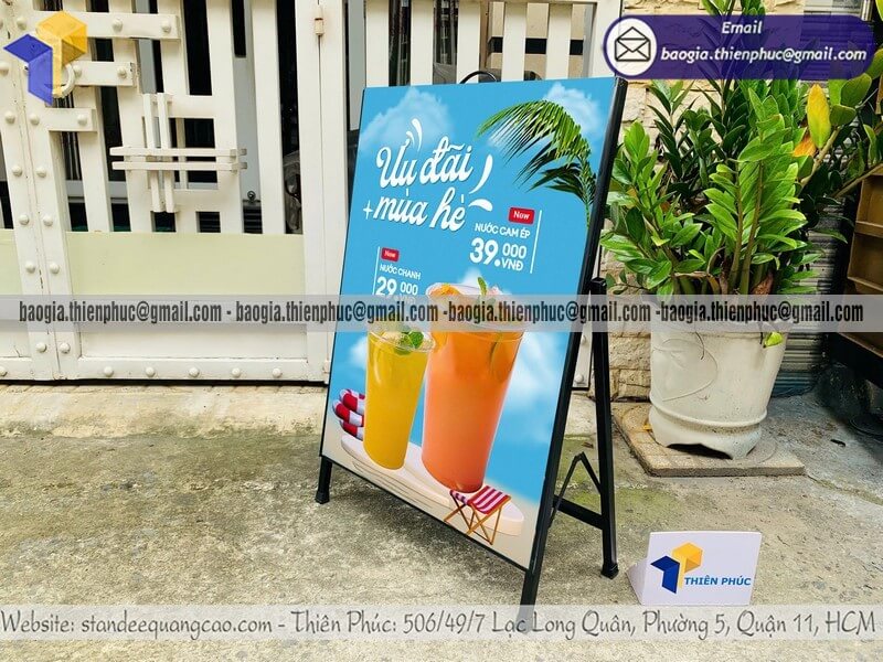 Biển hiệu A đứng hè phố khung sắt in 1 mặt - Thiên Phúc là xưởng sản xuất & Công Ty chuyên nhận in ấn và thiết kế logo theo yêu cầu khách hàng từ 1 cái trở lên, miễn phí thiết kế. Nhận đặt làm kích thước theo yêu cầu - Đặt hàng số lượng lớn tù 10 cái trở lên sẽ được chiết khấu giảm giá cực kỳ ưu đãi. Giá rẻ nhất - cạnh tranh nhất thị trường dao động chỉ từ 500.000đ/cái đến trên 800.000đ/cái trở lên. Công ty có hỗ trợ xuất hóa đơn VAT cho doanh nghiệp&công ty. Liên hệ ngay đến Thiên Phúc để nhận được báo giá chính xác nhanh chóng trong 5 phút và được tư vấn chi tiết mẫu mã và thiết kế logo. Giao hàng trên toàn quốc. Hỗ trợ giao nhanh trong ngày chỉ cần khách gửi mẫuthiết kế có sẵn.