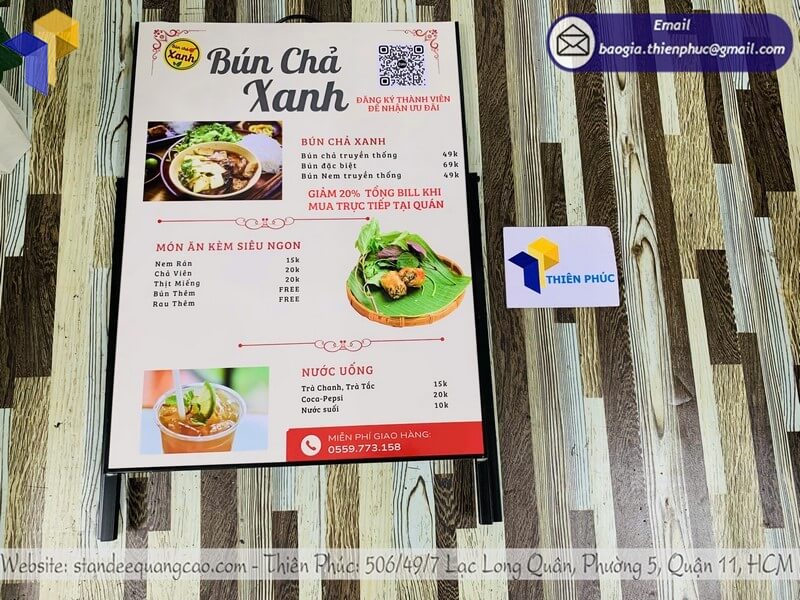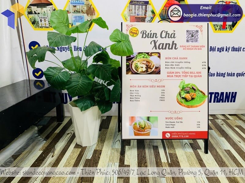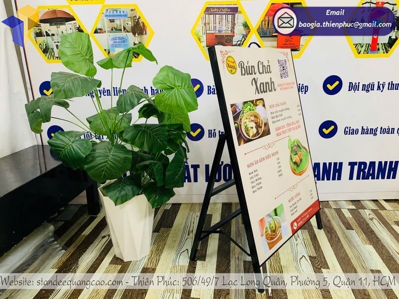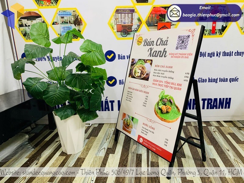Tên sản phẩm: Dịch Vụ In Standee Khung Sắt in logo menu BÚN CHẢ XANH