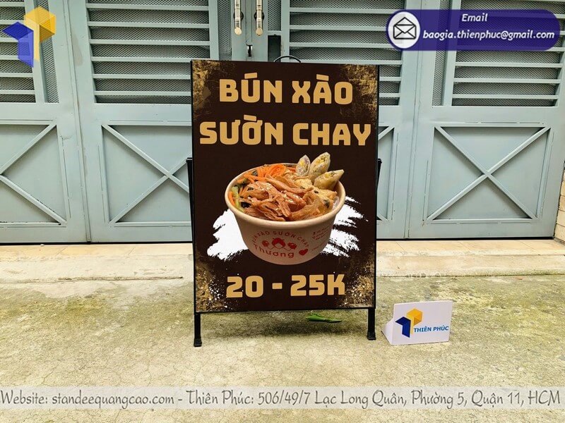 Tên sản phẩm: In Standee 1 Mặt Giao Liền với logo bán BÚN XÀO SƯỜN CHAY