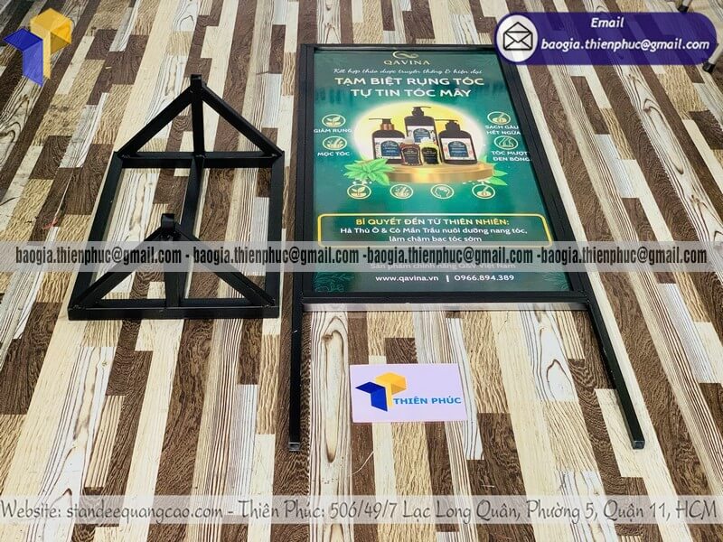 Tên sản phẩm: Nơi bán bảng standee đứng 2 mặt khung sắt giá sỉ cho nhãn hàng thương hiệu QAVINA