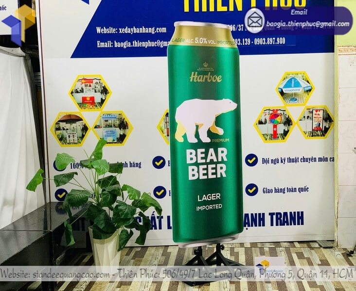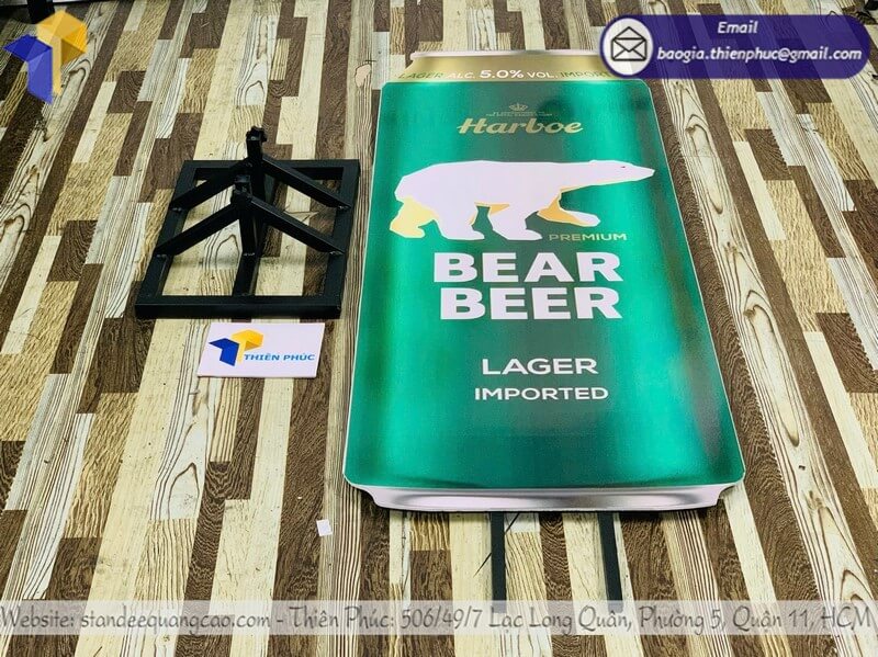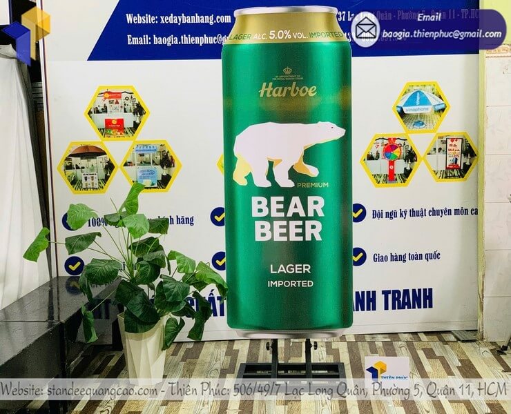 Tên sản phẩm: Sản xuất Standee Mô Hình 1 Mặt 3D với nhãn dán logo HARBOE BEAR BEER