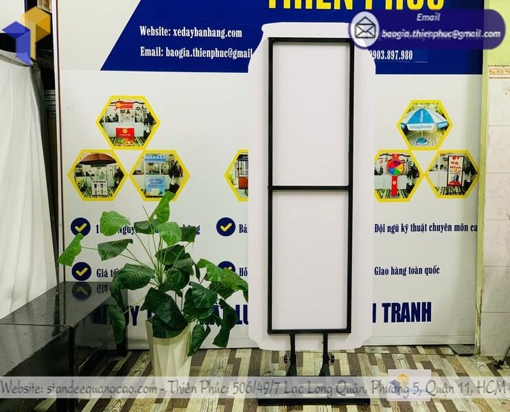 - Standee quảng cáo ngoài trời: Thiết kế bền chắc, chịu được gió, mưa, phù hợp các chương trình khuyến mãi, khai trương, lễ hội.