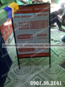 Standeemô hình khung sắt được sử dụng rộng rãi bởi tính năng thông dụng của chúng như nhỏ gọn, dễ di chuyển, hình ảnh bắt mắt thể hiện đầy đủ nội dung muốn quảng cáo, chi phí đầu tư thấp, hiệu quả quảng cáo mang lại cao.