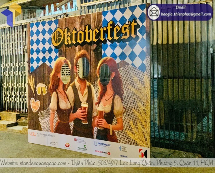 Trả lời: Khung được làm từ sắt, nhôm hoặc nhựa cao cấp, kết hợp bạt in PP/Hiflex chống nước, chịu được gió nhẹ và sử dụng nhiều lần, phù hợp cả sự kiện ngoài trời và trong nhà.