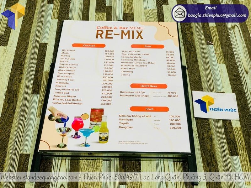 Tên sản phẩm: Xưởng làm bảng standee 1 mặt cho quán cafe với nhãn hiệu logo COFFEE & BAR RE-MIX