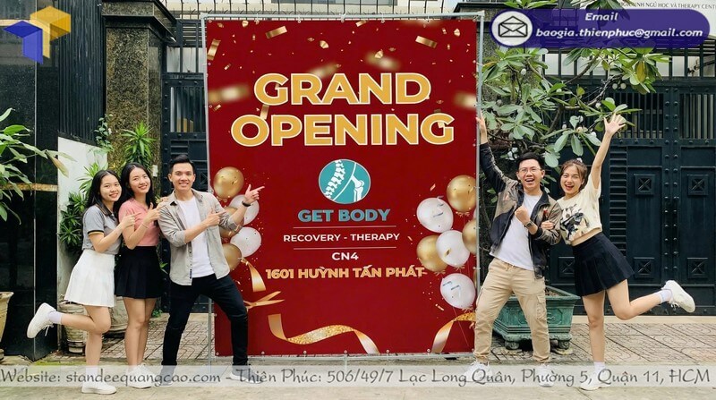 Tên sản phẩm: Xưởng nhận làm khung backdrop khai trương ngoài trời với logo GET BODY